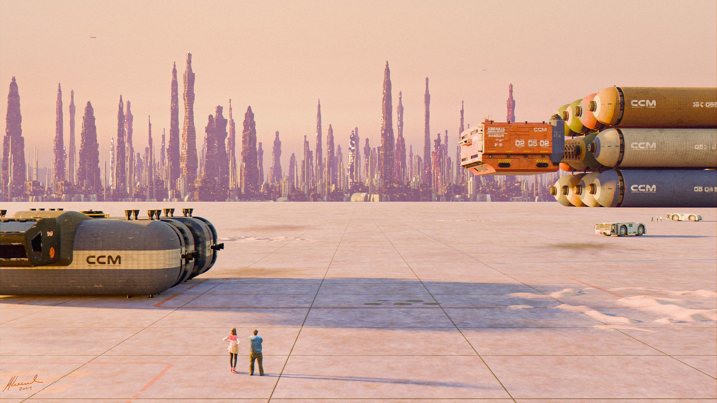I made the above 3d render recently. All the models are my creations, with the exception of the wheeled trucks and the people, which are free assets from Sketchfab. This depicts a scene from my forthcoming novel, Space Trucker Jess, in which the people of the planet Gilder Nefan hold a quarterly Bazaar. Here, trader ships traveling a circuit of worlds sell goods in a huge open market. The people of Gilder Nefan smoke or ingest a psychotropic drug known as sweet jisthmus in order to reach transcendent states of consciousness. Through this, they are able to commune with inscrutable god-like aliens known as numens. But the sweet jisthmus doesn’t grow on Gilder Nefan — it grows off-world and only comes via the quarterly trade.